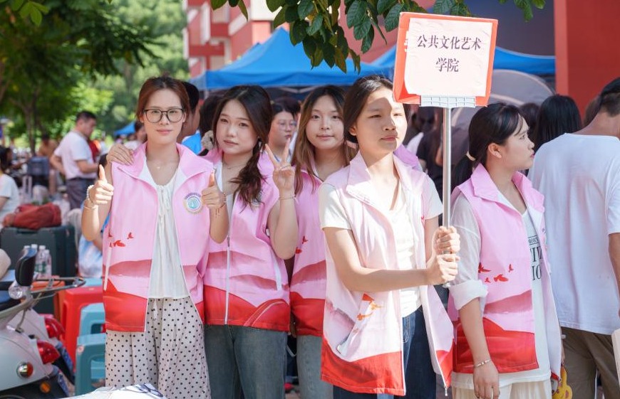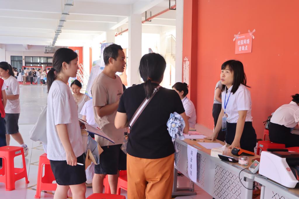 刚踏进校门,晨光中便跃动起一抹抹明亮的志愿者红——身穿红背心的志愿者们迅速迎上前,有的帮忙提行李,有的耐心指引报到流程,还有的热情为新生和家长递上解渴的水。他们忙碌的身影在雨中穿梭,他们踮脚张望的身影与滴落的汗珠共舞,构成了一道温暖而动人的风景线,让初来乍到的新生和家长们感受到了关怀与温暖。