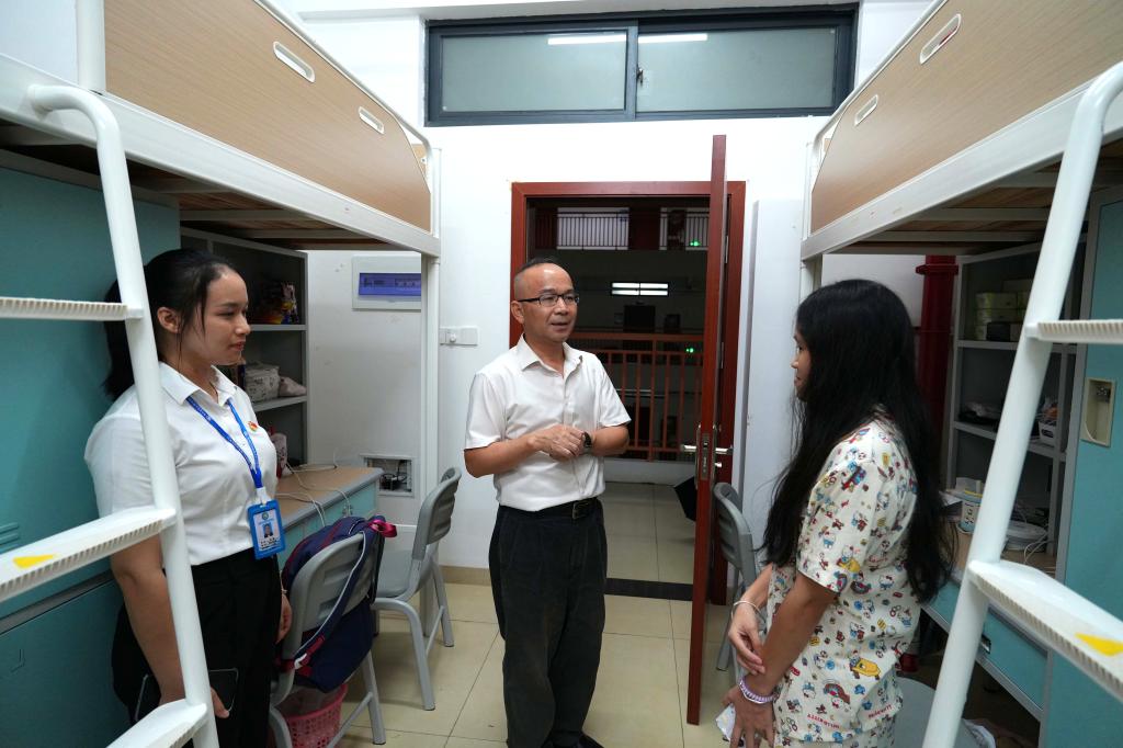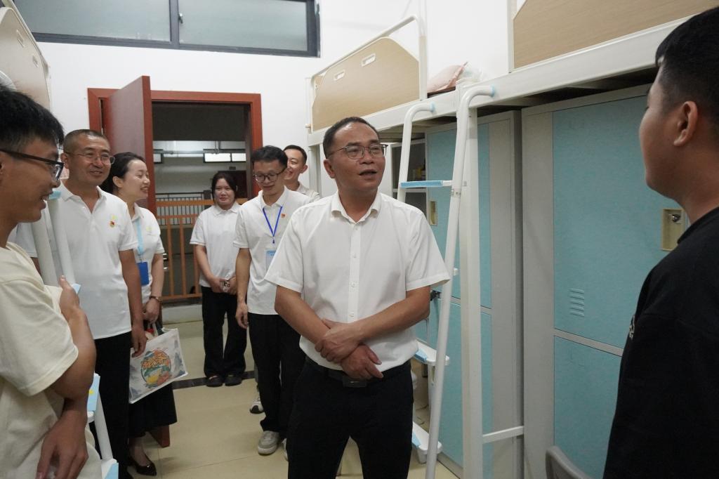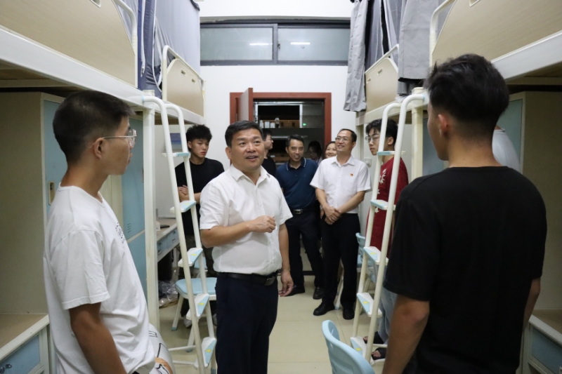 11日晚校领导深入宿舍,为新生“安家”注入暖心能量。校党委书记马敏,党委副书记、校长李振科带领学校领导班子成员走访新生宿舍和西苑餐厅。他们轻敲每一扇宿舍门,与新生及亲切交谈,仔细询问住宿是否习惯、生活用品是否齐全,还耐心解答新生关于校园生活的种种疑问。在西苑餐厅,校领导们认真查看饭菜质量与种类,叮嘱食堂各窗口要确保饮食安全与营养均衡,让新生们吃得放心、舒心。