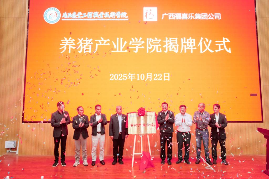 仪式上,校企双方代表共同为“养猪产业学院”揭牌,并合影留念。此次合作标志着学校在推进校企协同育人、服务乡村振兴方面迈出坚实一步。