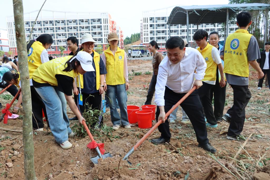 随后,学校党委书记马敏宣布:广西农业工程职业技术学院 2026 年 “携手添新绿,共建生态园” 植树活动正式开始!