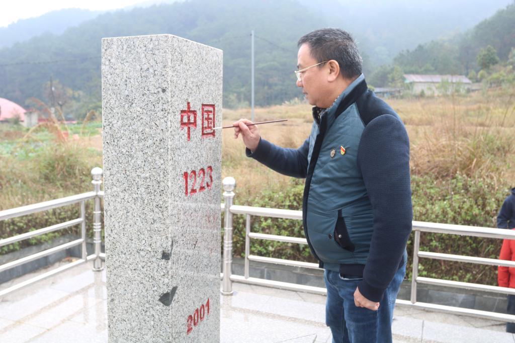 学员们来到爱店口岸,赴1223—1224号界碑开展主题活动。“我志愿加入中国共产党……”在界碑前,全体党员举起右拳,重温入党誓词,铿锵誓言回荡在边境线上,既是对革命先烈的告慰,也是对初心使命的坚守。学员们手持红色颜料,小心翼翼地为界碑描红,一笔一画间,不仅让界碑焕发光彩,更擦亮了心中的爱国底色。