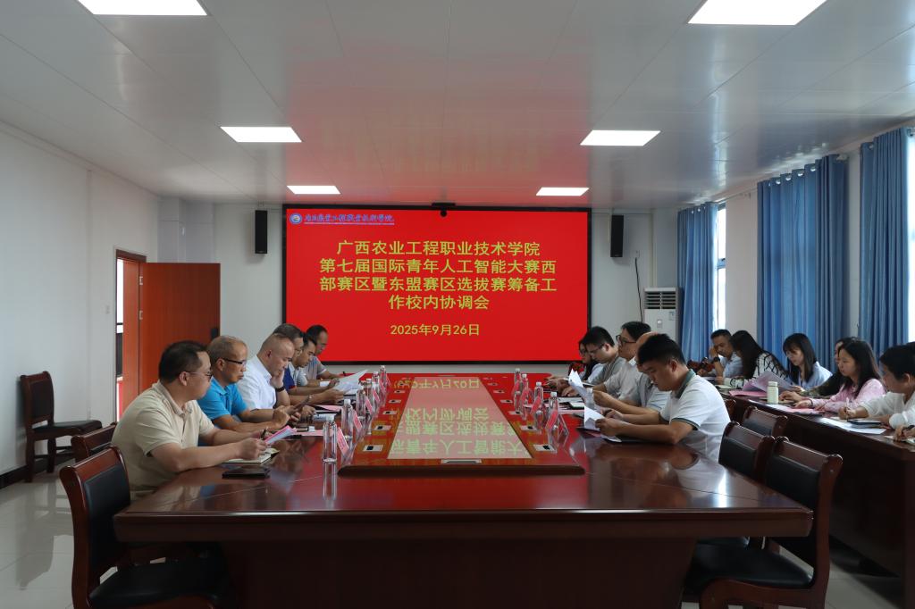 为扎实推进第七届国际青年人工智能大赛西部赛区暨东盟赛区选拔赛筹备工作,确保赛事顺利举行,9月26日,学校组织召开大赛协调会。学校副校长李祖培、莫嘉凌出席会议,党政办、党委宣传部、教学科研处、后勤保卫处、校团委、图书与信息中心负责人,人工智能学院、机电工程学院负责人及相关工作联系人参加会议。会议由人工智能学院负责人主持,围绕赛事筹备关键环节展开深入研讨和部署。