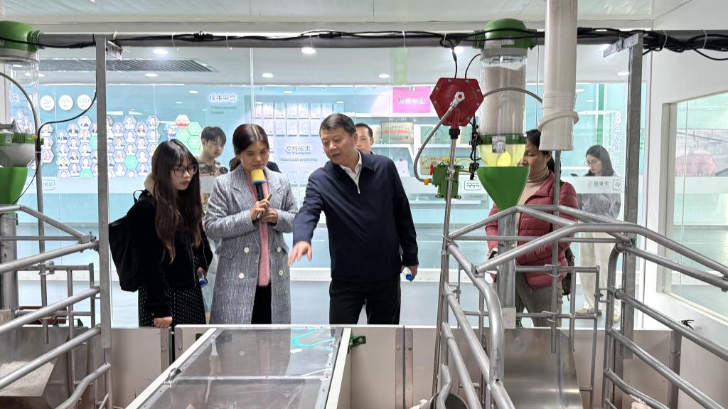 在扬翔股份人力资源负责人陪同下,马敏一行到企业的FPF智能养猪体验中心实地考察,详细了解查情宝、精喂仪等核心智能设备功能特性,以及FPF未来猪场智能管理平台运行逻辑与技术优势,并重点调研了智能化养殖场景下畜牧兽医专业的人才需求标准与岗位能力要求。