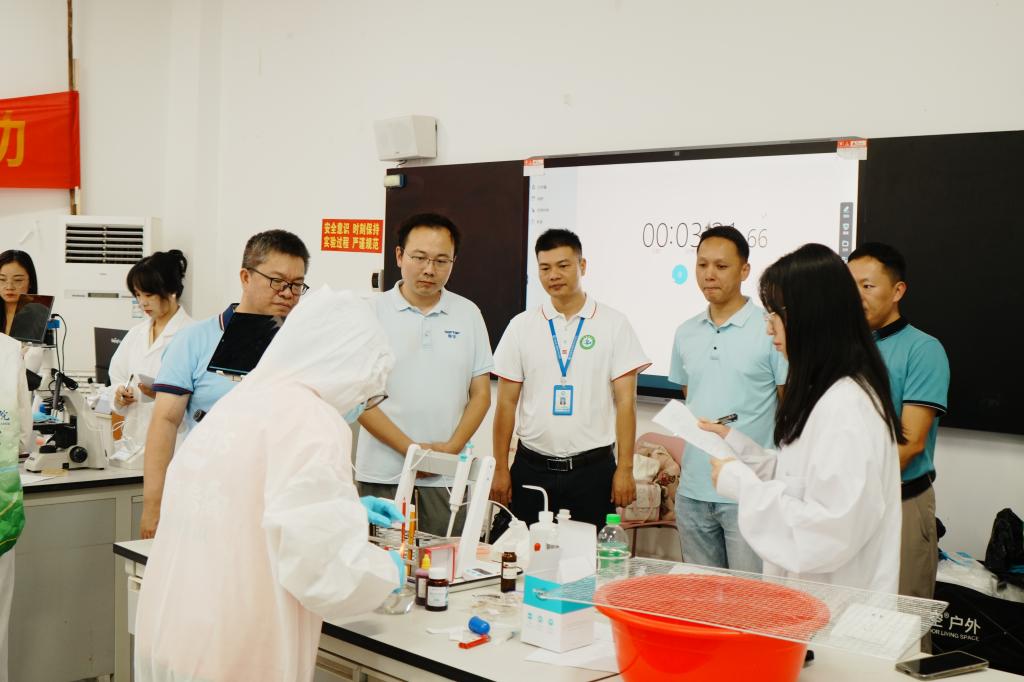 本次比赛采用“理论+实操”双重考核模式,全面考查学生的专业技能与综合应用能力。理论知识竞赛围绕兽医病理学、药理学、临床诊断学等核心课程设置试题,全面考察选手对专业基础知识的理解与运用能力,为实操环节的精准操作奠定基础,践行“理论指导实践、实践检验理论”的赛事举办初衷。实操环节聚焦兽医专业核心技能,设置三大考核项目:鸡翅静脉采血、鸡心脏采血和细菌涂片染色镜检。参赛选手们在操作中展现出扎实的专业基础与良好的职业素养,现场评委则依据操作规范、完成效率与结果质量进行严格打分。温氏股份广西养猪公司为比赛的顺利开展提供了坚实物资保障。