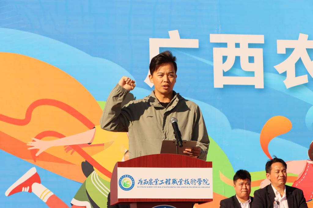 11月20日上午,运动会正式拉开序幕。学校党委书记马敏,党委副书记、校长李振科,副校长李祖培,副校长莫嘉凌,总会计师韦炜出席开幕式,全体教职工及全体在校学生参加了开幕式。党委副书记、校长李振科为运动会开幕式致辞,他在致辞中表示,学校将坚持不懈用习近平新时代中国特色社会主义思想铸魂育人,扎实落实立德树人根本任务,坚持德、智、体、美、劳五育并举,不仅传授专业知识与技能,更注重培养吃苦耐劳的职业素养、终身学习的综合能力与服务三农的责任担当。他希望全体运动员以饱满的热情、昂扬的斗志投入到比赛中,牢记“友谊第一、比赛第二”的精神,遵守比赛规则,服从裁判指挥,注意比赛安全,在赛场中展现农工院学子奋勇争先、团结协作的体育道德风尚,将运动激情转化为深耕农业、科技兴农的奋进力量。随后,在全体师生的热烈掌声中,党委书记马敏宣布广西农业工程职业技术学院第四届运动会正式开幕!