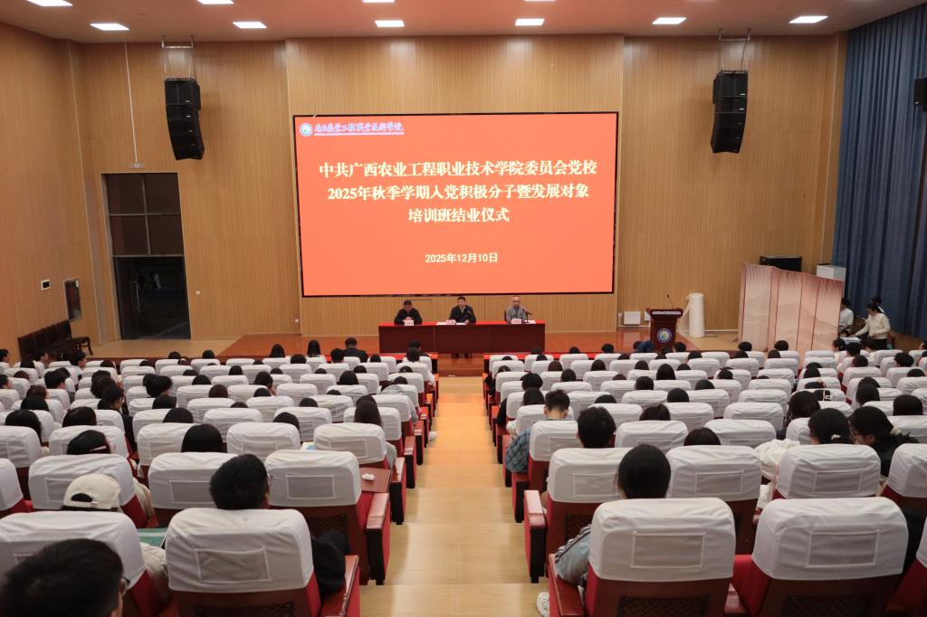 12月10日,我校在2号阶梯教室举行2025年秋季学期入党积极分子暨发展对象培训班结业仪式。